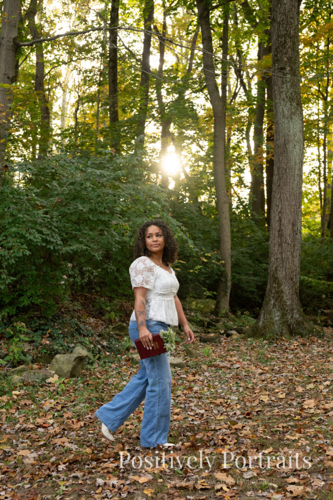 Jadyn’s senior photos at David Fortier River Park in Olmsted Falls were the perfect blend of nature, meaning, and personality. This park is one of my favorite locations for senior pictures in Northeast Ohio, especially for seniors who love a natural and timeless look. Between the wooded trails, flowing river, and iconic waterfall, it offers so much variety all in one spot.