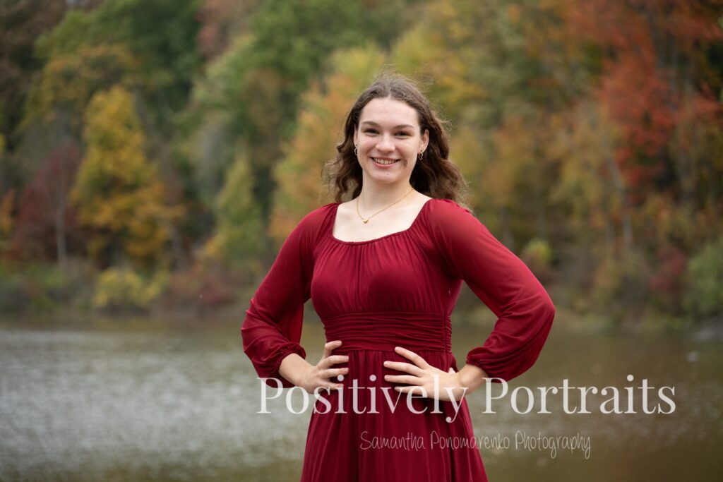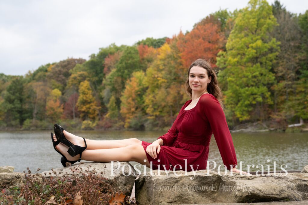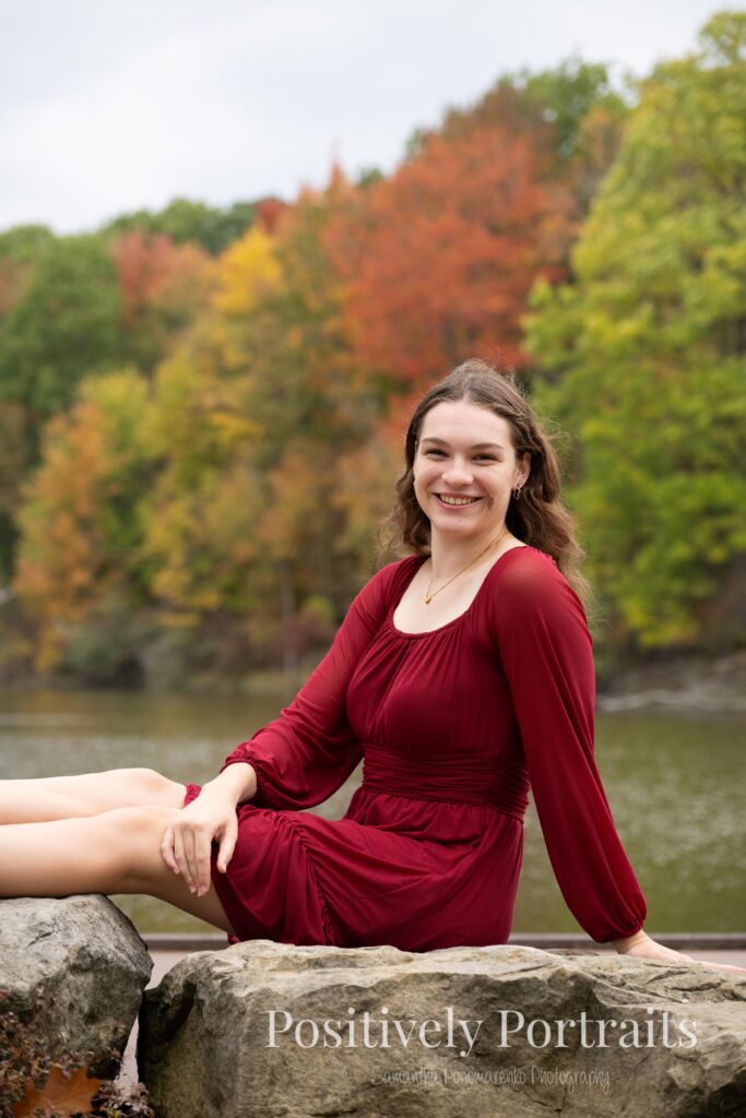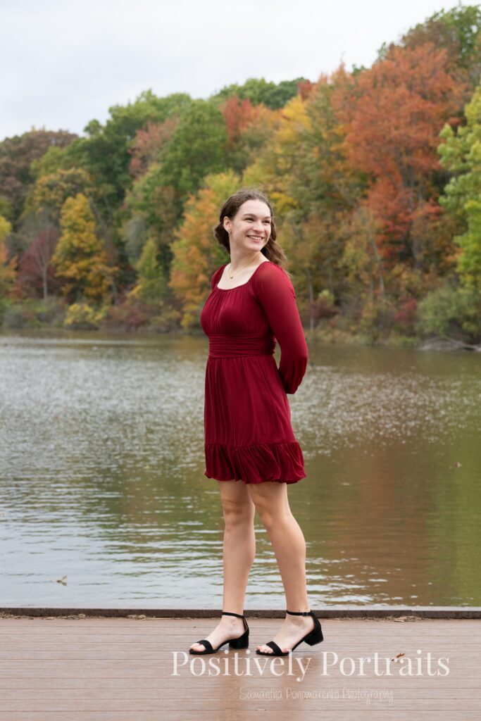 Alexandra’s senior session at Brunswick Lake could not have landed on a more perfect fall day. It was peak autumn, and the lake was surrounded by the most beautiful colors, with trees showing off every shade of red, orange, and gold. Even better, it was one of those rare fall days that still felt warm and comfortable, which made walking around the park and exploring each spot even more enjoyable.