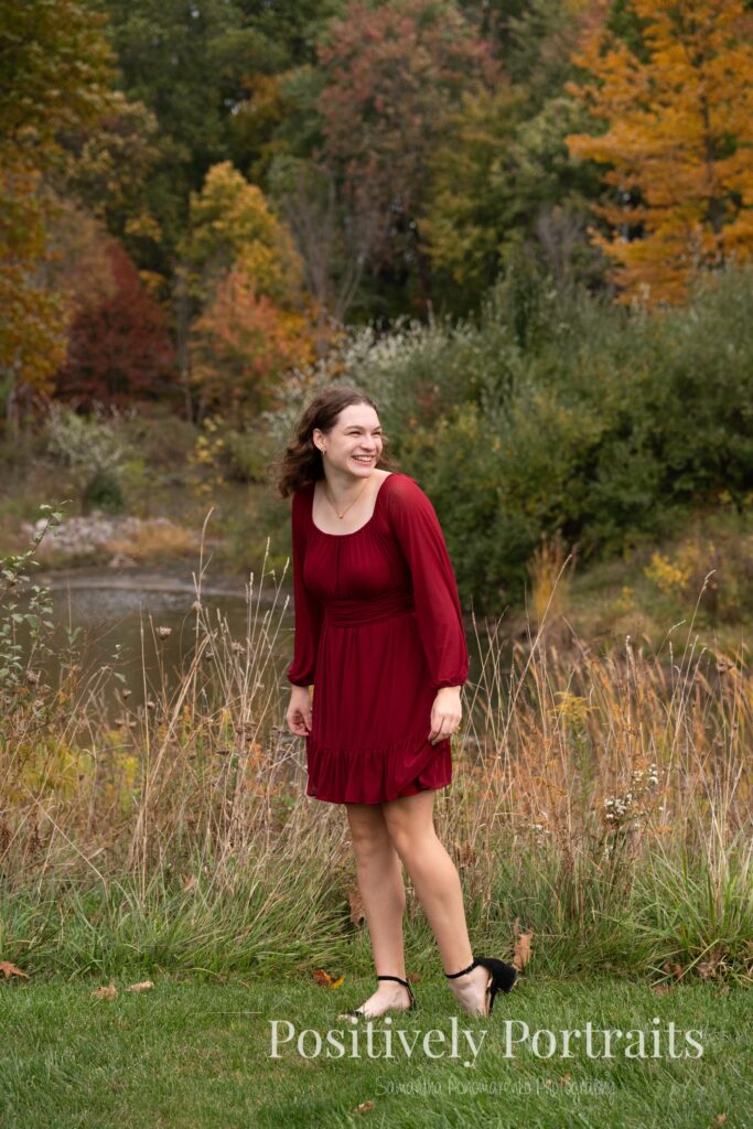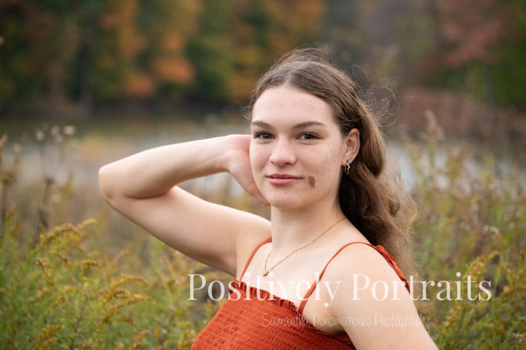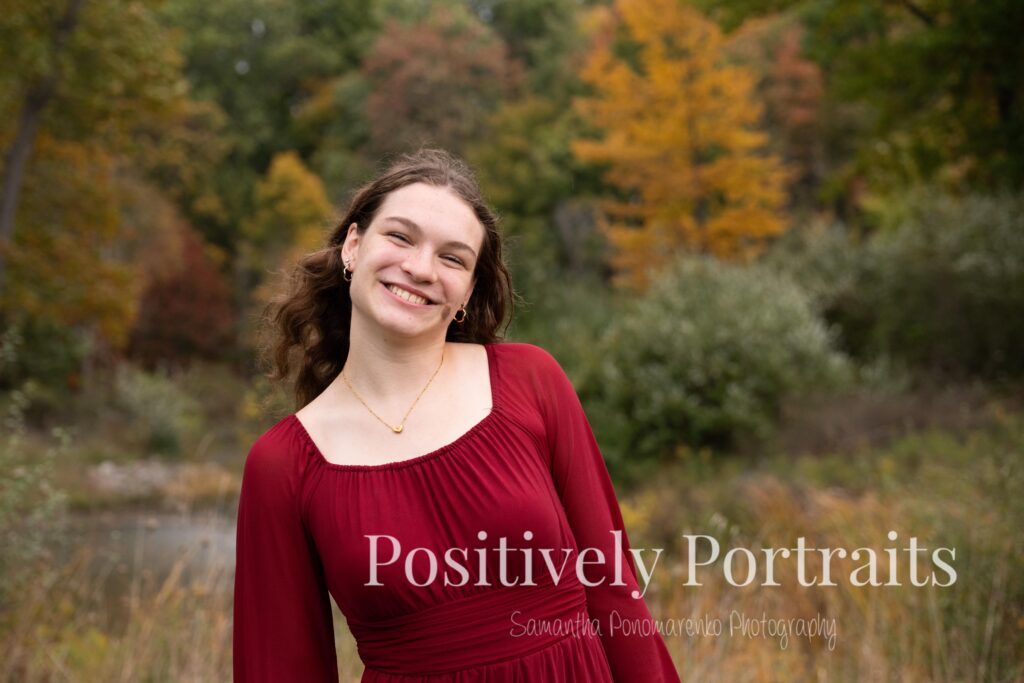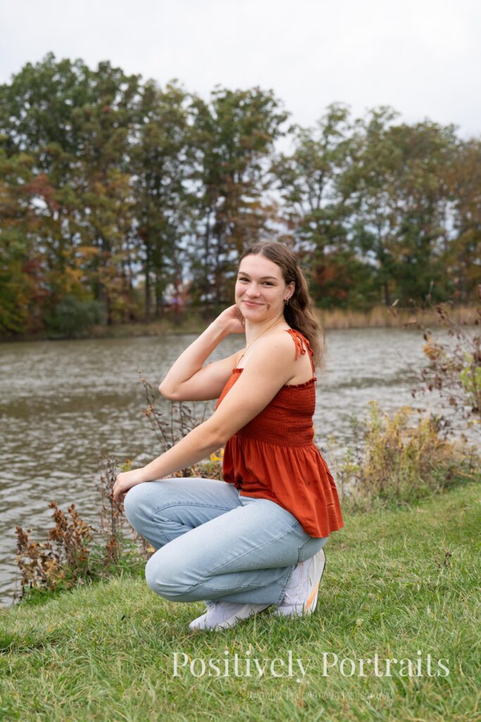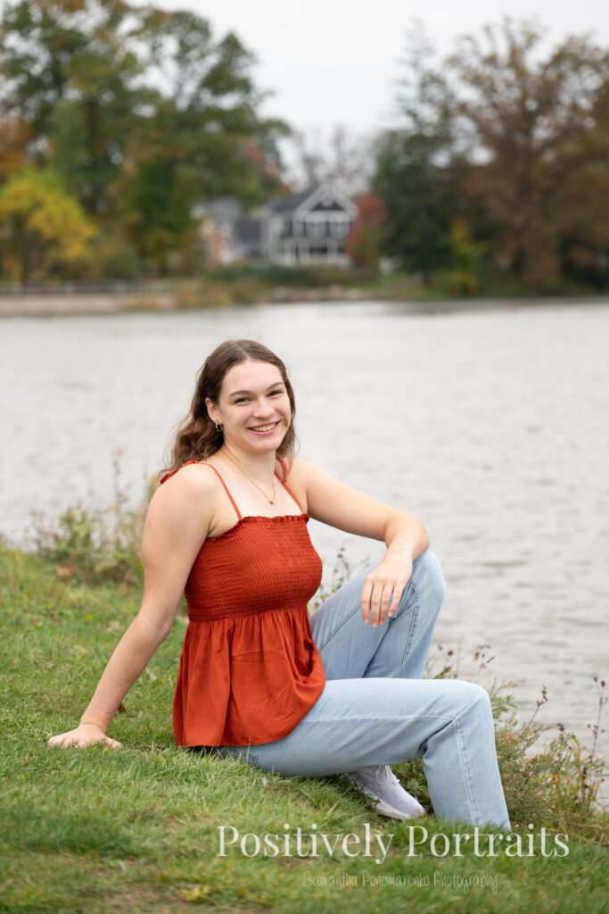 Alexandra’s senior session at Brunswick Lake could not have landed on a more perfect fall day. It was peak autumn, and the lake was surrounded by the most beautiful colors, with trees showing off every shade of red, orange, and gold. Even better, it was one of those rare fall days that still felt warm and comfortable, which made walking around the park and exploring each spot even more enjoyable.